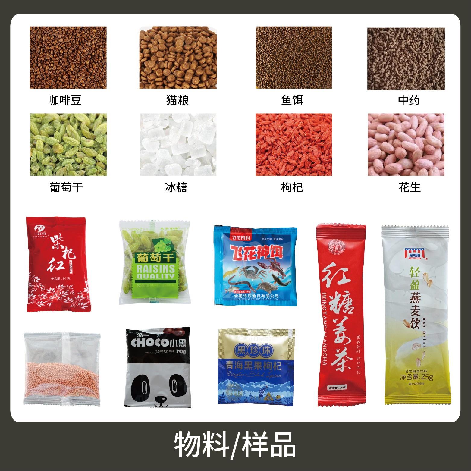 適用于食品、醫(yī)藥、化工、化妝品行業(yè)中顆粒物品的計量包裝,如:種子、枸杞、中藥顆粒等。