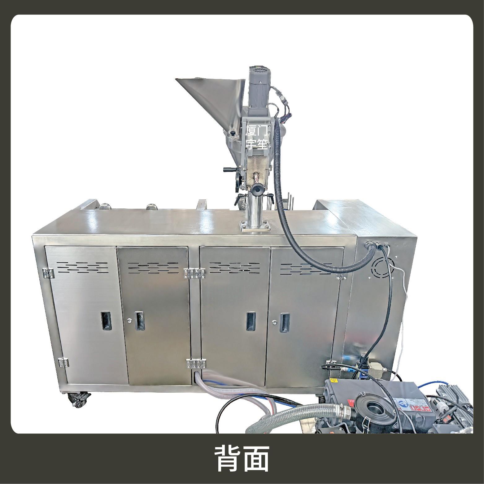 2、包裝流程全自動(dòng),可抽真空(真空度可達(dá)到-0.1Mpa)??筛鶕?jù)充填物料的性質(zhì)選配不同的下料結(jié)構(gòu)。